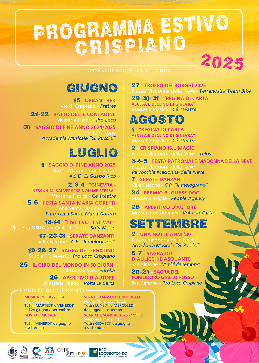 PROGRAMMA ESTIVO – CRISPIANO 2025, un calendario di eventi culturali, artistici e ricreativi che animeranno il nostro territorio durante i mesi estivi!