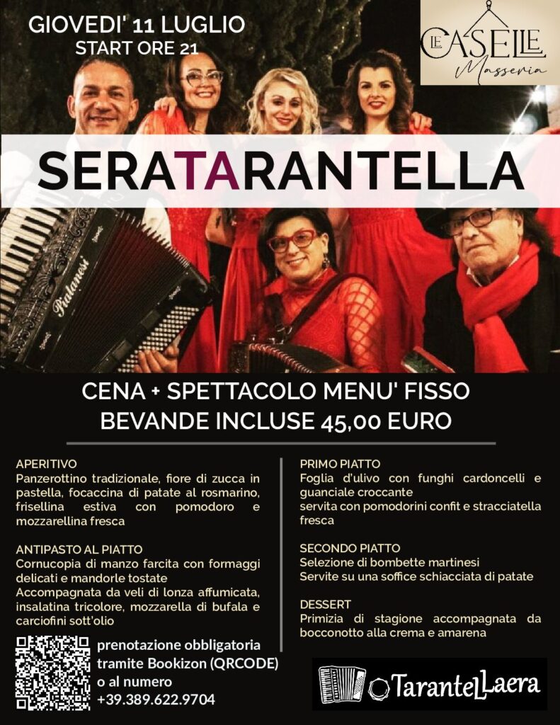 CENA SPETTACOLO SOTTO LE STELLE A MASSERIA LE CASELLE