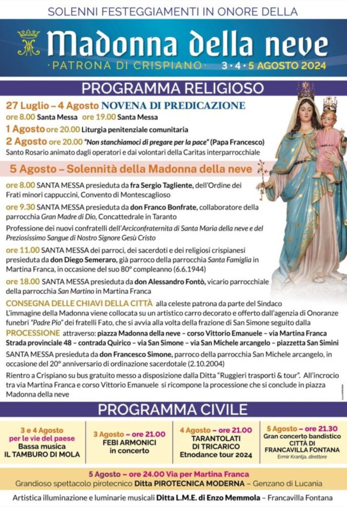 • Organizer Name: Madonna della Neve, Patrona di Crispiano