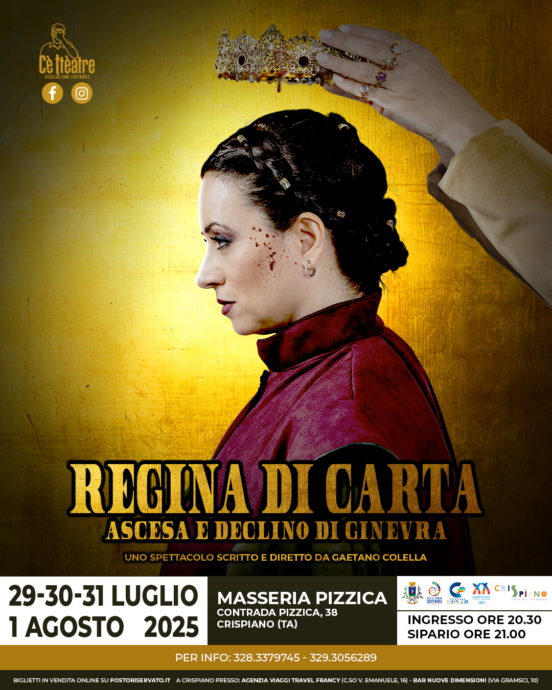 Lo spettacolo fa parte del cartellone di iniziative sostenute dal Comune di Crispiano, denominato โCrispiano Creativa โ25โ