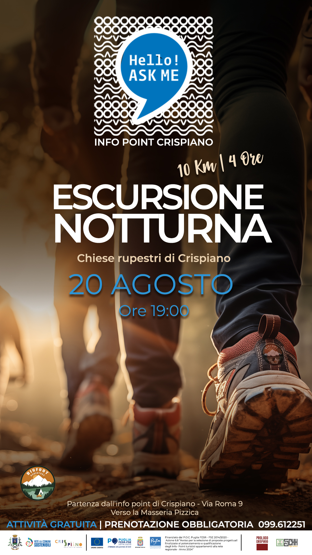 Attività di animazione on-site gratuite a cura dell’Info Point di Crispiano e finanziate dal P.O.C. Puglia FESR-FSE 2014/2020 -Azione 6.8 “Avviso per la selezione di proposte progettuali finalizzate al potenziamento e qualificazione degli Info-Point turistici appartenenti alla rete regionale – Anno 2024”